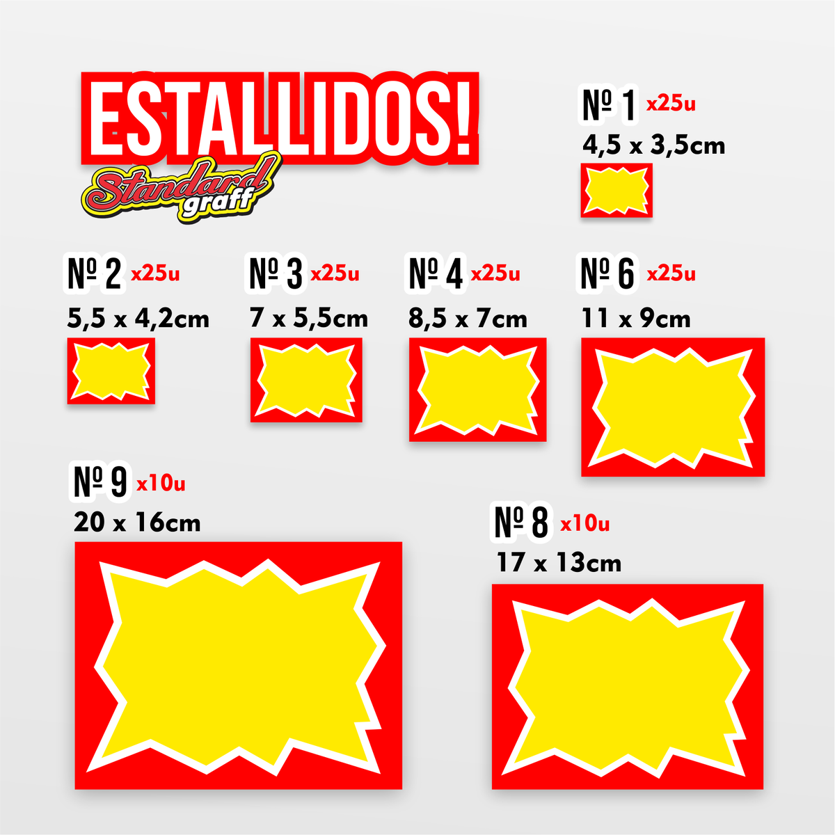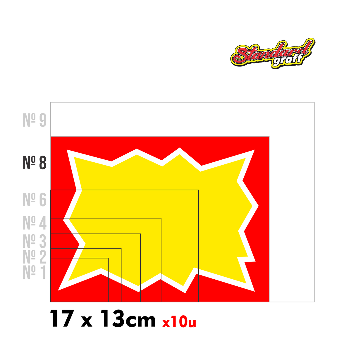 Hechos en cartulina de colores vibrantes, con diseño explosivo que llama la atención al toque. Perfectos para pegar en vidrieras, góndolas, mostradores, ferias, stands o cualquier lugar donde necesites que el cliente mire.