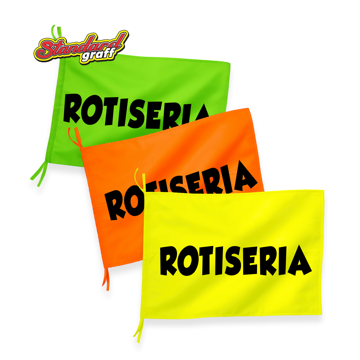 Bandera fluo (70x47cm) para comercio "ROTISERIA" - cod:91