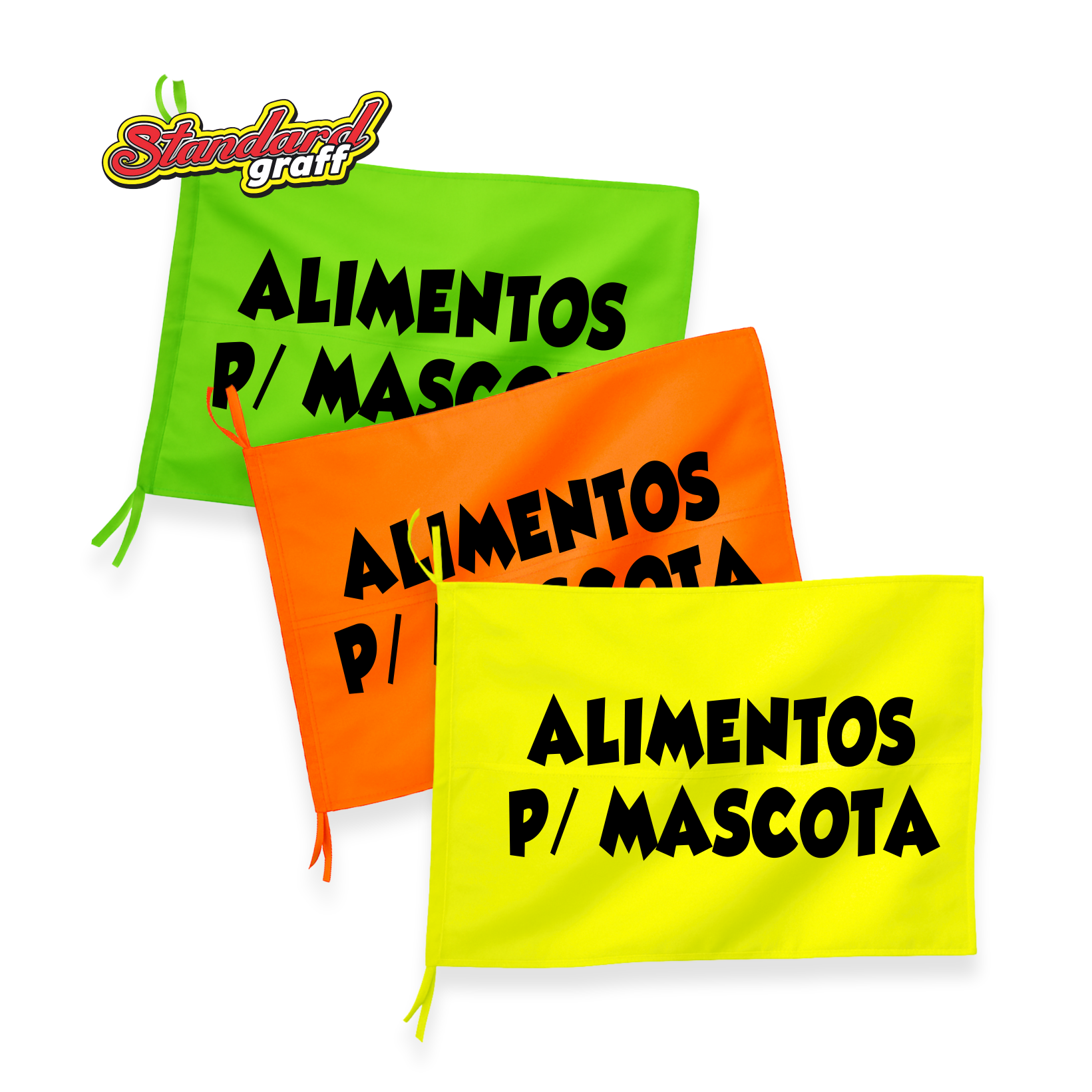 Bandera fluo (70×47cm) para comercio "ALIMENTOS P/ MASCOT" - cod:02